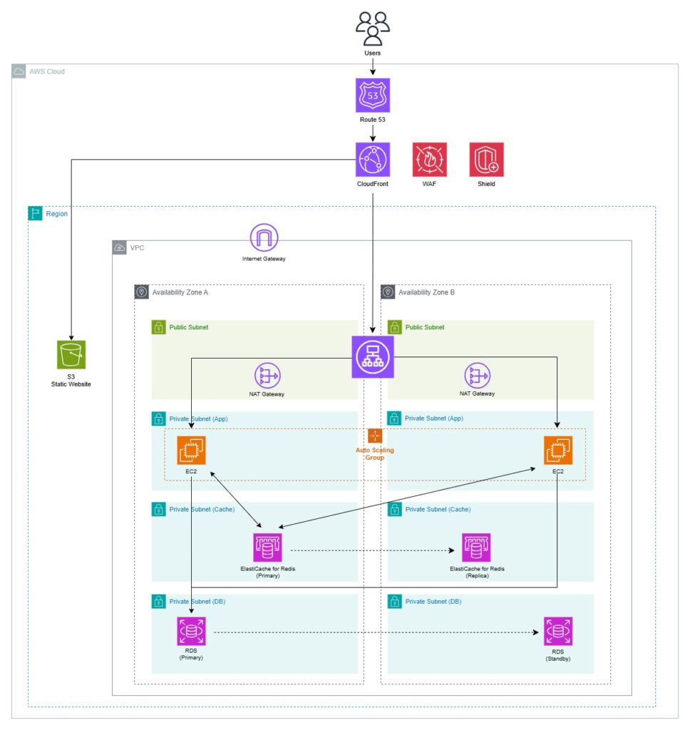 利用者自身で CIDR(Classless Inter-Domain Routing)を割り当て、AZ(Availability Zone)ごとにPublic SubnetやPrivate Subnetを構成し、Route Table、IGW(Internet Gateway)、NAT Gateway、SG(Security Group)、NACL(Network ACL)などを組み合わせて、EC2 や RDS などのリソースを安全に配置・分離することができます。