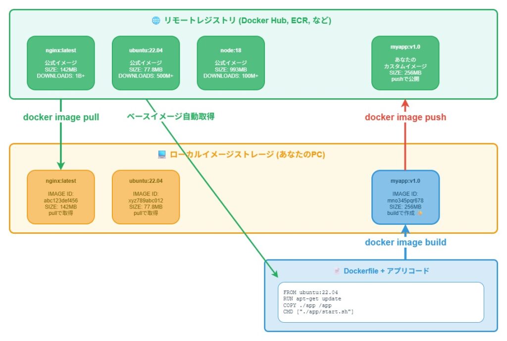 Dockerイメージの取得・生成・配布の流れ
