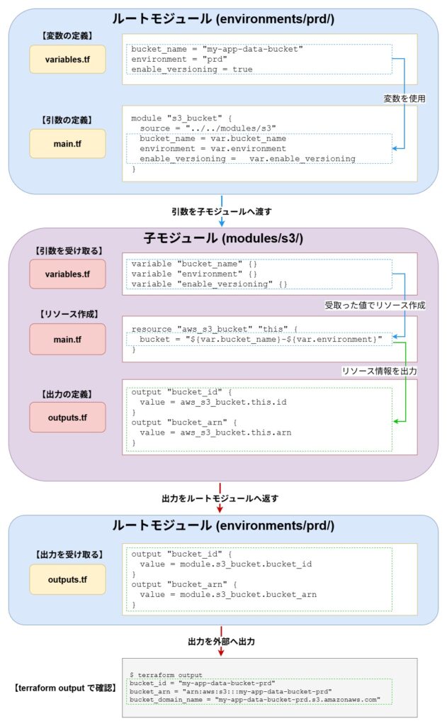 | ルートモジュールスコープ | locals、variableで定義 | 同一ディレクトリ内 |